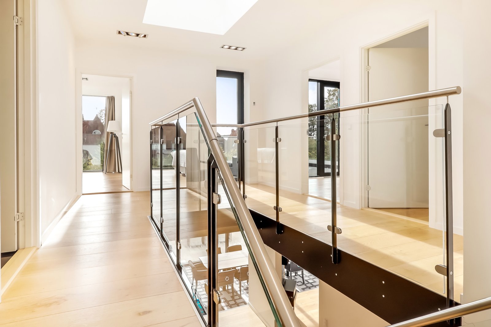 Huset byder på 245 m² eksklusiv beboelse, suppleret af en 90 m² højloftet kælder med blandt andet vinkælder og velværeområde med indendørs sauna. Dertil kommer en 52 m² dobbelt garage, der fuldender ejendommens helhedsindtryk af luksus og funktionalitet.